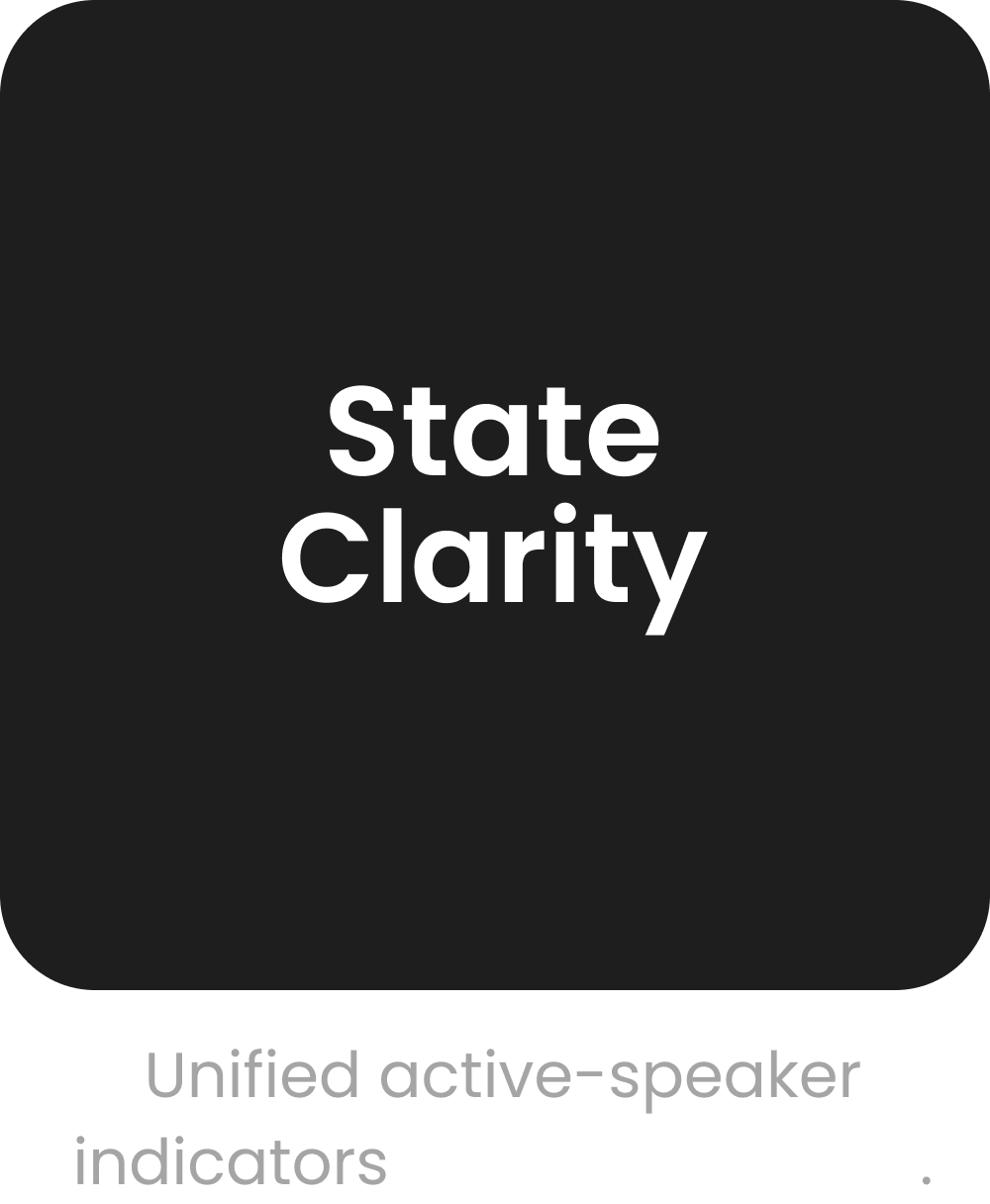 One consistent active‑speaker treatment across camera‑on/off.