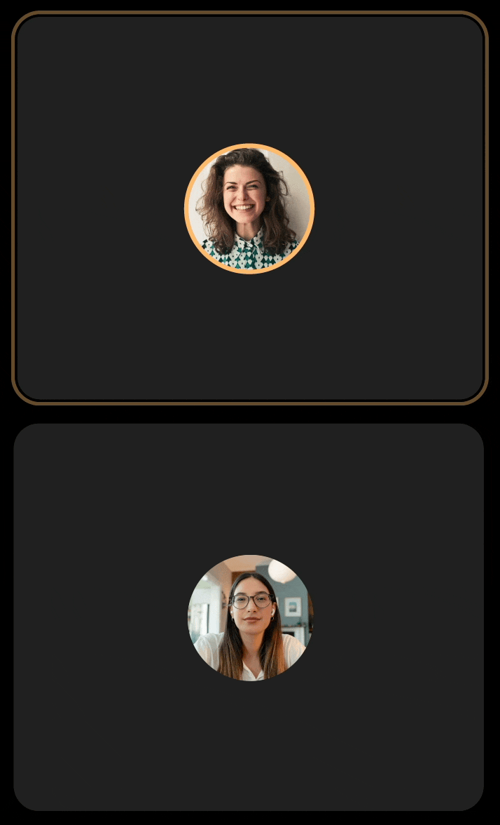 Many participants keep cameras off, which can make live sessions feel static and harder to follow. I explored audio‑responsive indicators to help listeners track the conversation while keeping the UI consistent across camera states.